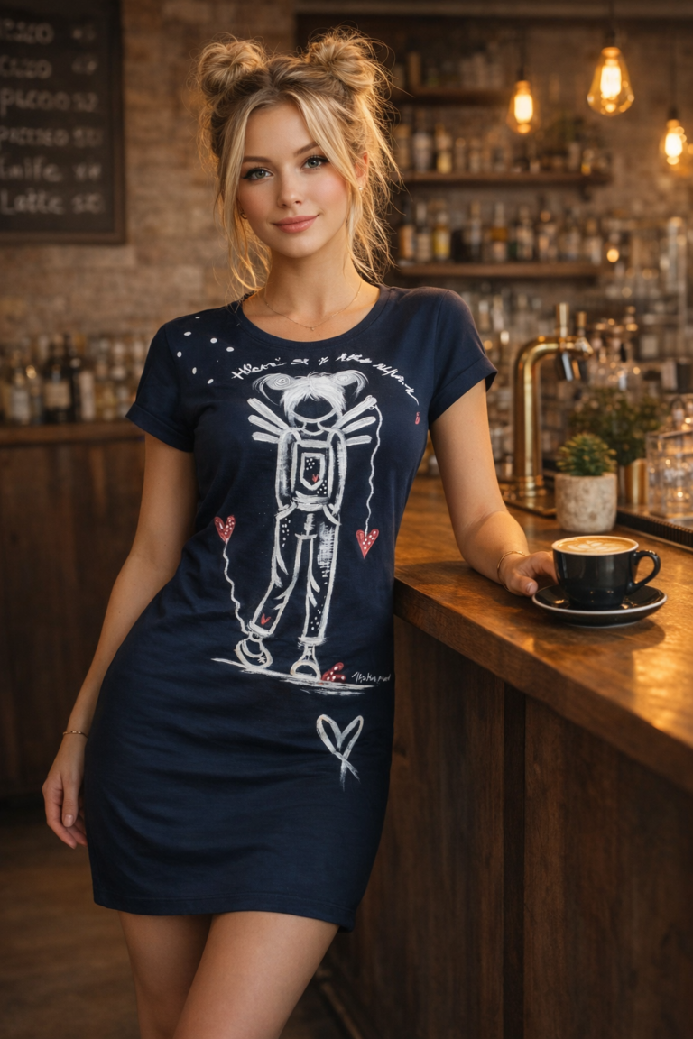 Každé šaty  jsou malované ručně přímo mou rukou. Jedná se o originální kus, žádný strojový potisk. Motiv vznikl z autorské kresby.