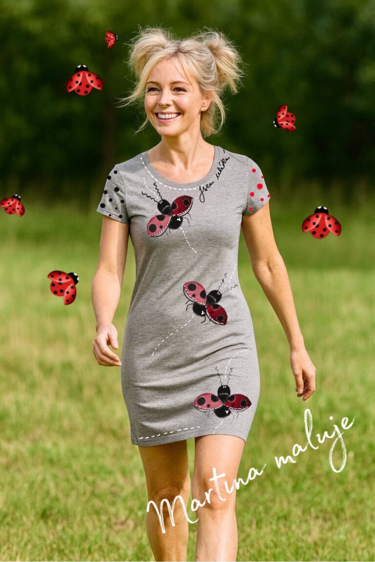 Každé šaty  jsou malované ručně přímo mou rukou. Jedná se o originální kus, žádný strojový potisk. Motiv vznikl z autorské kresby.