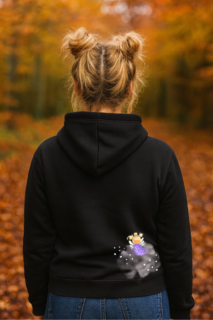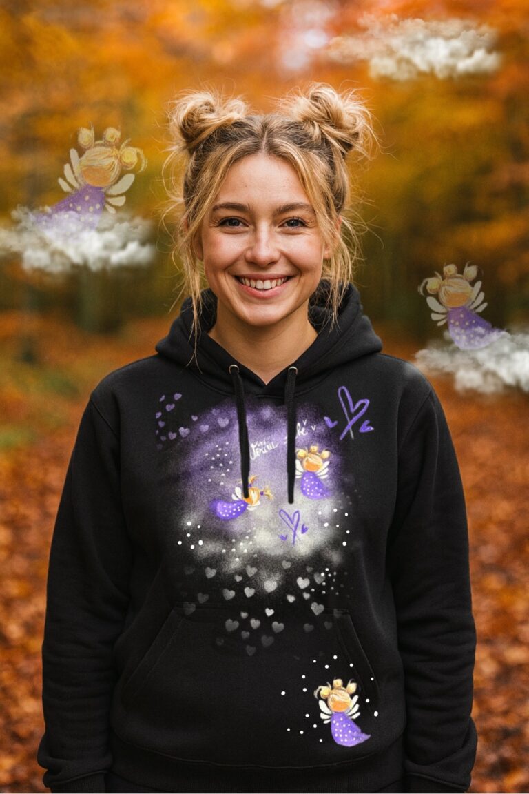 Mikina je suprovmi, pohodlná a díky originálnímu ručně malovanému designu naprosto jedinečná – nikdo jiný nebude mít tu tvou. Hodí se na podzimní procházky, večerní relax i chvíle, kdy chceš mít kousek andělské energie stále u sebe.