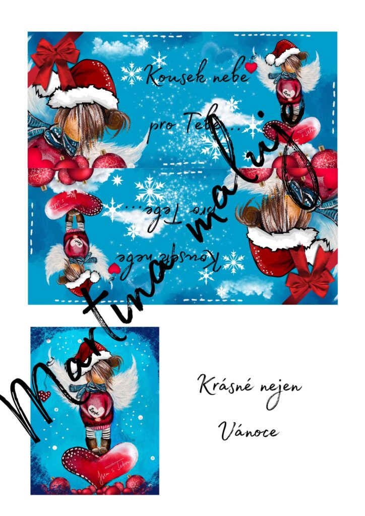 Záložka do knížky na stažení - Kousek nebe Obohatte své čtení o kouzlo vánoční atmosféry s naší jedinečnou záložkou do knížky s motivem Andělíčku...Tento krásně ilustrovaný design nejenže udrží vaše stránky na správném místě, ale také přinese do vašeho čtenářského zážitku kousek magie. Záložku si snadno stáhnete, vytisknete a použijete jako dokonalý doplněk k vaší oblíbené knize. Ideální dárek pro milovníky literatury a vánočního období! Nezapomeňte si zpříjemnit chvíle strávené s knihou tímto originálním kouskem. Stáhněte si ji ještě dnes a přeneste se do světa vánočních příběhů!
