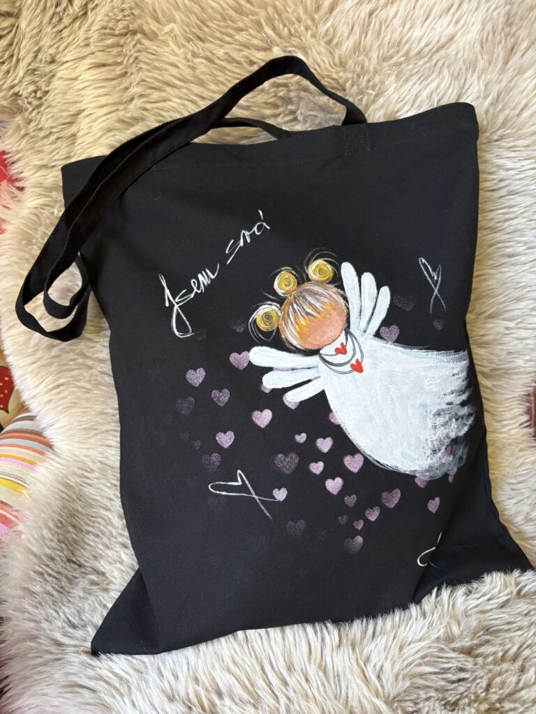 Taška na cokoliv, vždy se hodí mít ji po ruce.. vytáhneš z kabelky, nandáš co potřebuješ a ještě uděláš parádu... jde o ruční malbu barvami na textil, které jsou zažehlené. Text: Jsem svá
